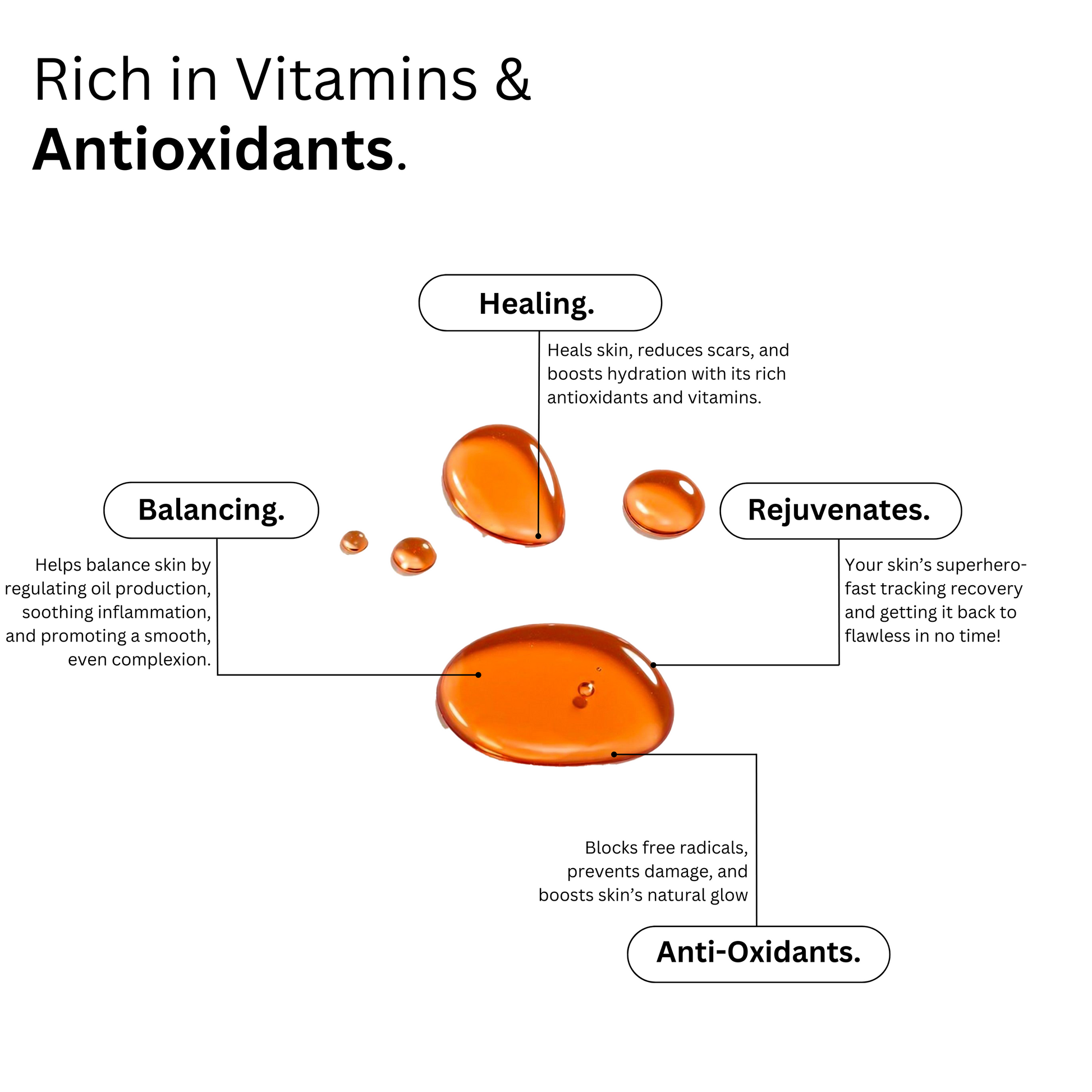 10ml IRegular price Rs. 799Regular priceUnit price / perSale price Rs. 799Packed with rare Omega 7 and Vitamin A, Sea Buckthorn Berry Oil works wonders to even skin tone, improve texture, and tackle skin issues like acne, eczema, and psoriasis. It boosts collagen production, reduces wrinkles, and deeply moisturizes for a radiant, youthful glow.