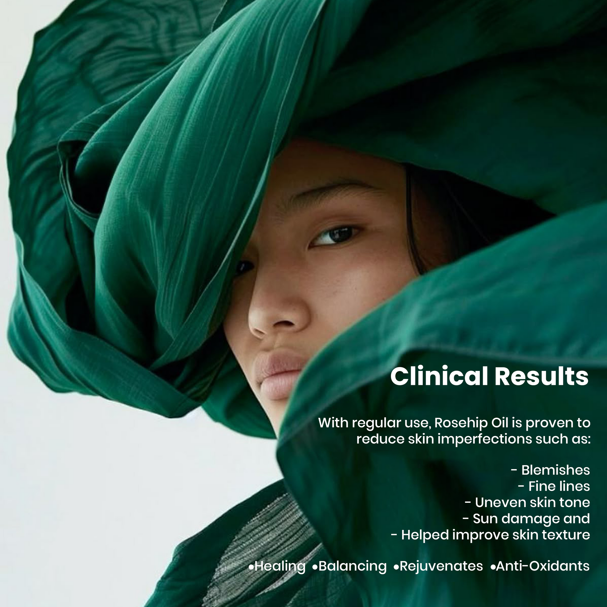 The high vitamin A (retinol) content in rosehip oil helps accelerate skin cell turnover, reducing the appearance of scars, fine lines, and wrinkles while promoting smoother, younger-looking skin.