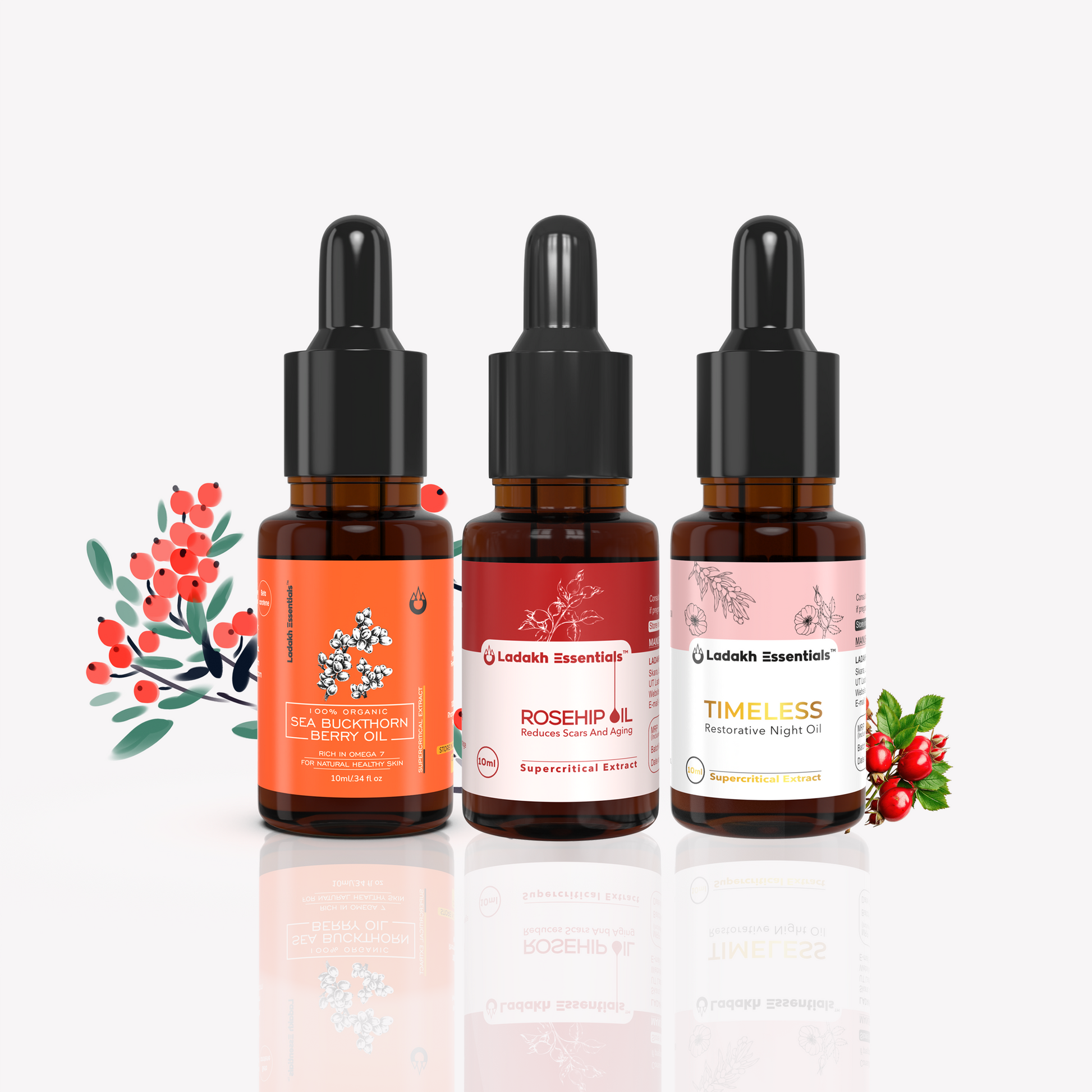 All three oils-Sea Buckthorn Berry Oil, Sea Buckthorn Seed Oil, and Rosehip Oil-offer great benefits: